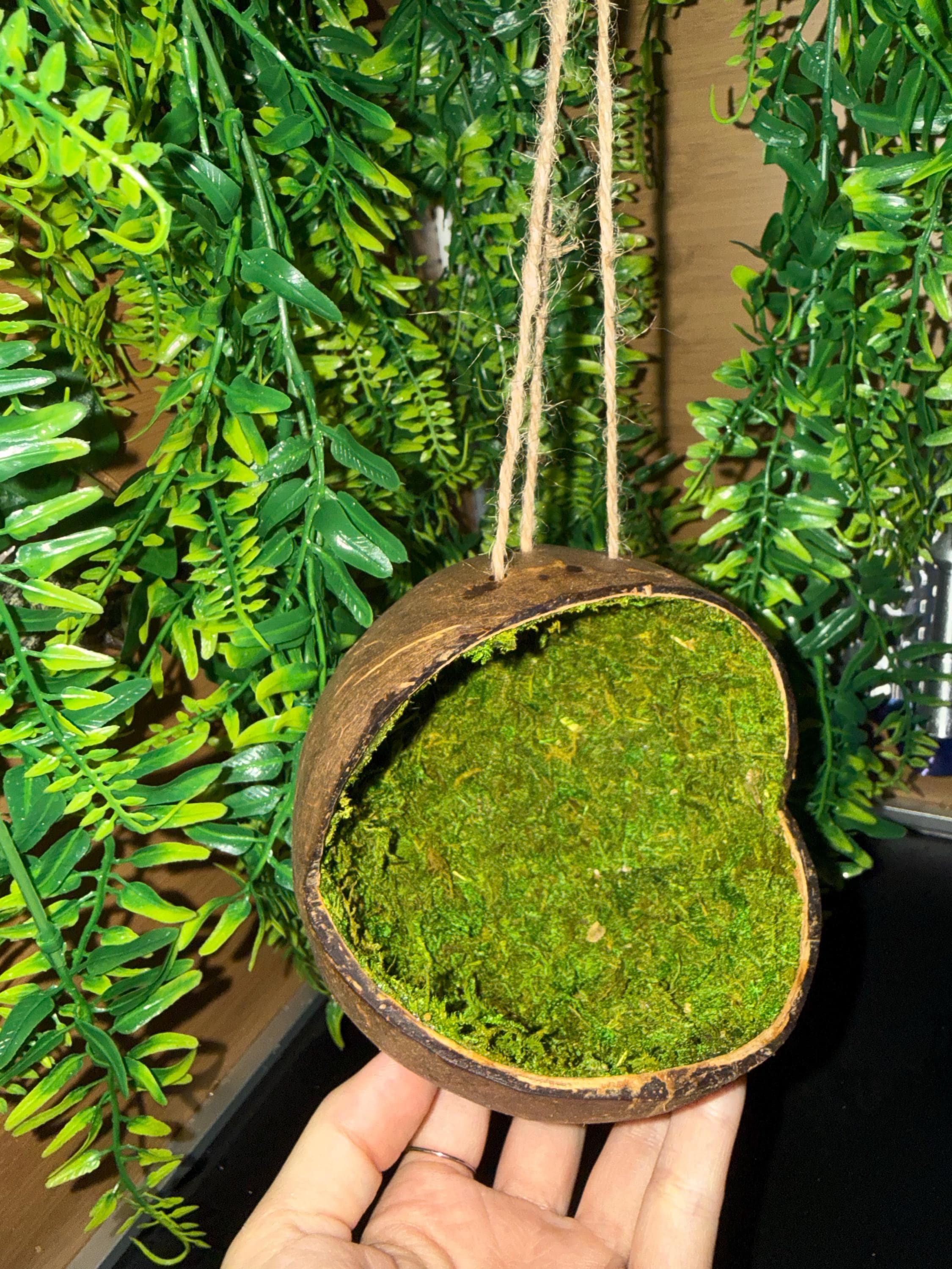 Enjoy a nice lazy day soaking up some UVB in this soft, mossy coconut hanging hide. Curl up for a nice snooze while you gently sway away the day and night.